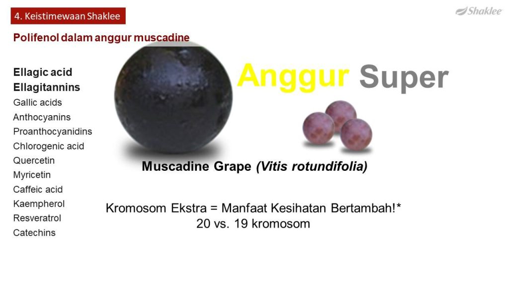 Anggur Muscadine mengandungi resveratrol yang mampu bertindak jauh sehingga ke tahap DNA sel. Kajian ini dilaksanakan oleh saintis Shaklee, Dr Elizabeth Blackburn iaitu penerima hadiah Nobel. So bukan calang-calang orang yang hasilkan ResV dan Vivix ni.